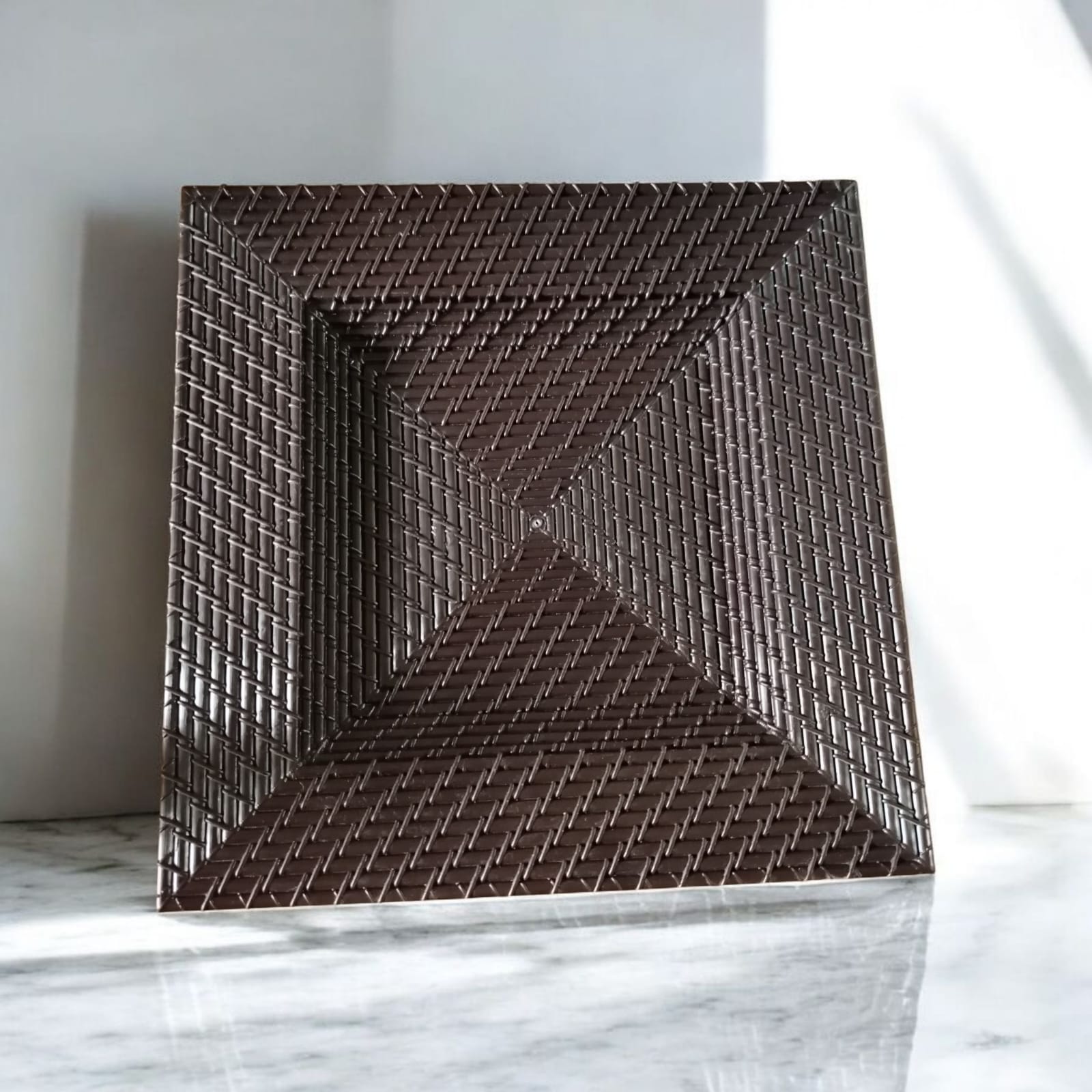 Plato base cuadrado tipo Bambú, color chocolate